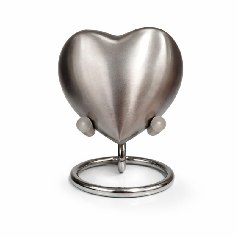 Esta delicada ánfora keepsake ha sido elaborada en bronce, destacada por su diseño en forma de corazón y su tonalidad profunda.