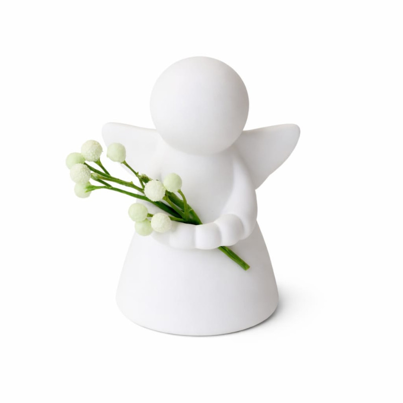Ánfora de aluminio con un delicado acabado blanco brillante y diseño en forma de ángel. Su estilo transmite pureza y serenidad, convirtiéndola en una pieza conmemorativa llena de significado.