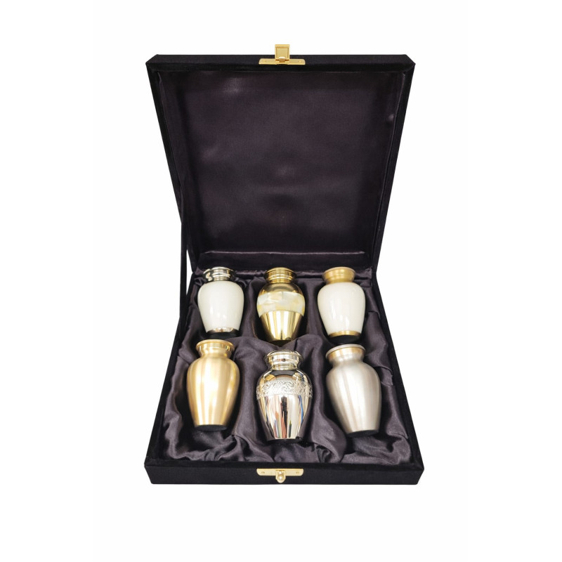 Estas delicadas ánforas keepsake han sido elaboradas en bronce, destacadas por su elegancia y durabilidad y sus diseños variados permiten conservar un recuerdo único.